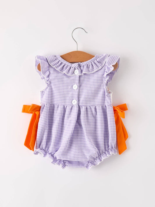 Fall Halloween Purple Balloon Pumpkin Cat Smock Embroidery Baby Girl Romper