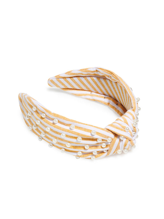 PEARLS AND STRIPES KNOTTED HEADBAND