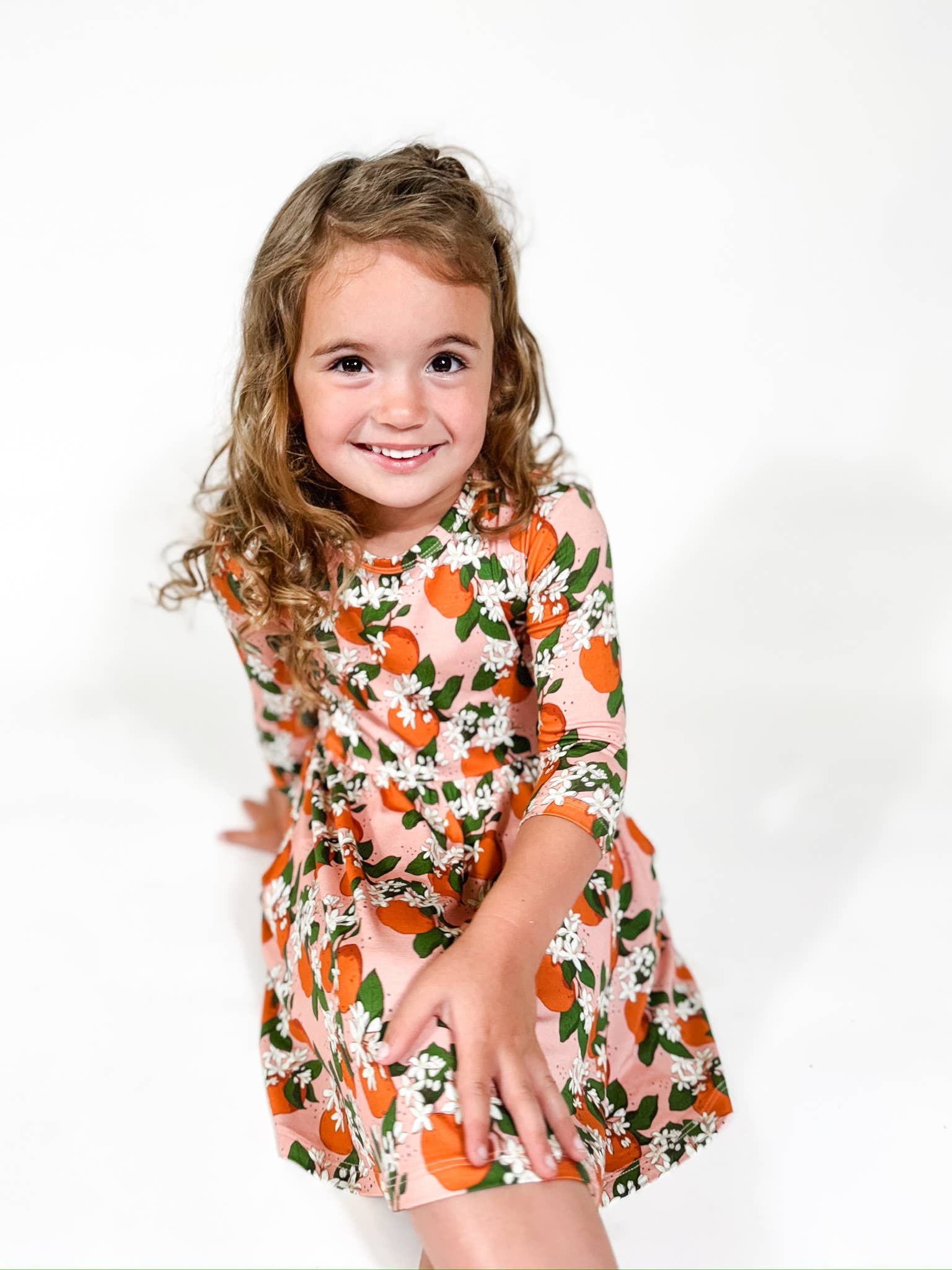 Designed for little adventurers who love to explore, the Orange Blossoms Sleeve Dress combines style with serious functionality. Crafted from a luxurious blend of 95% bamboo viscose and 5% spandex, this dress feels wonderfully soft against delicate skin while offering gentle stretch for active play. The relaxed silhouette and generously sized front pockets mean endless room for collecting treasures and trinkets. Lightweight and breathable, it keeps kids comfortable from sunrise to sunset—whether they're spinning at the park or heading to special occasions. The tagless neckline adds an extra touch of care, while the easy pullover design makes getting dressed a breeze. Perfect for pairing with sneakers for everyday adventures or dressed up with tights and a cozy layer for cooler weather.