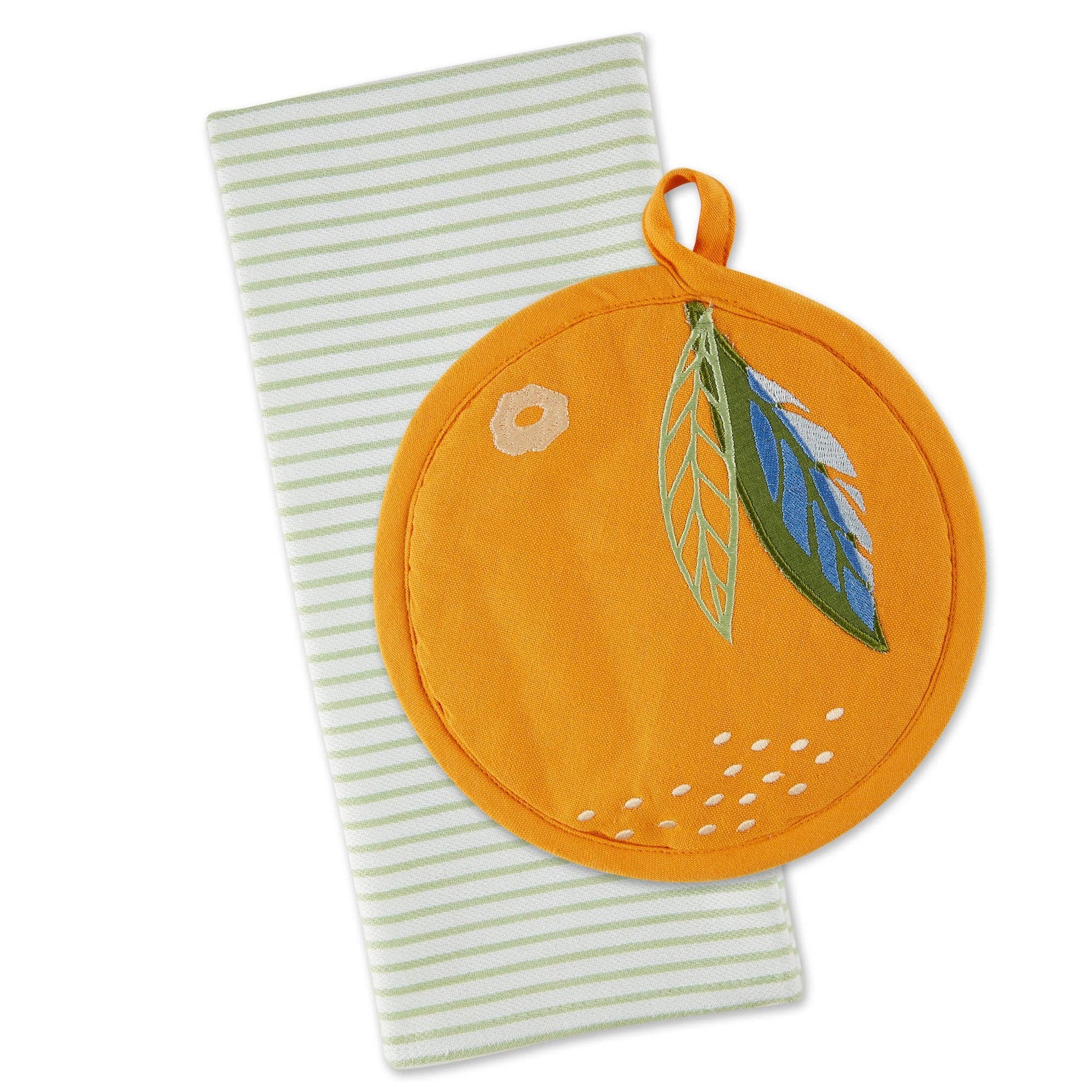 Introducing the Orange Potholder Gift Set by Design Imports, a brand with over 30 years of experience in creating quality home goods. This product is a part of our Kitchen Tabletop Linens range and is perfect for adding a pop of color to your kitchen. It is not just fashionable and fun, but also functional. Our potholder set is a staple for any home, regardless of the season. Experience the blend of style and practicality that DII is known for. Remember to check back regularly for our trend-based items that bring warmth and charm to every home.
