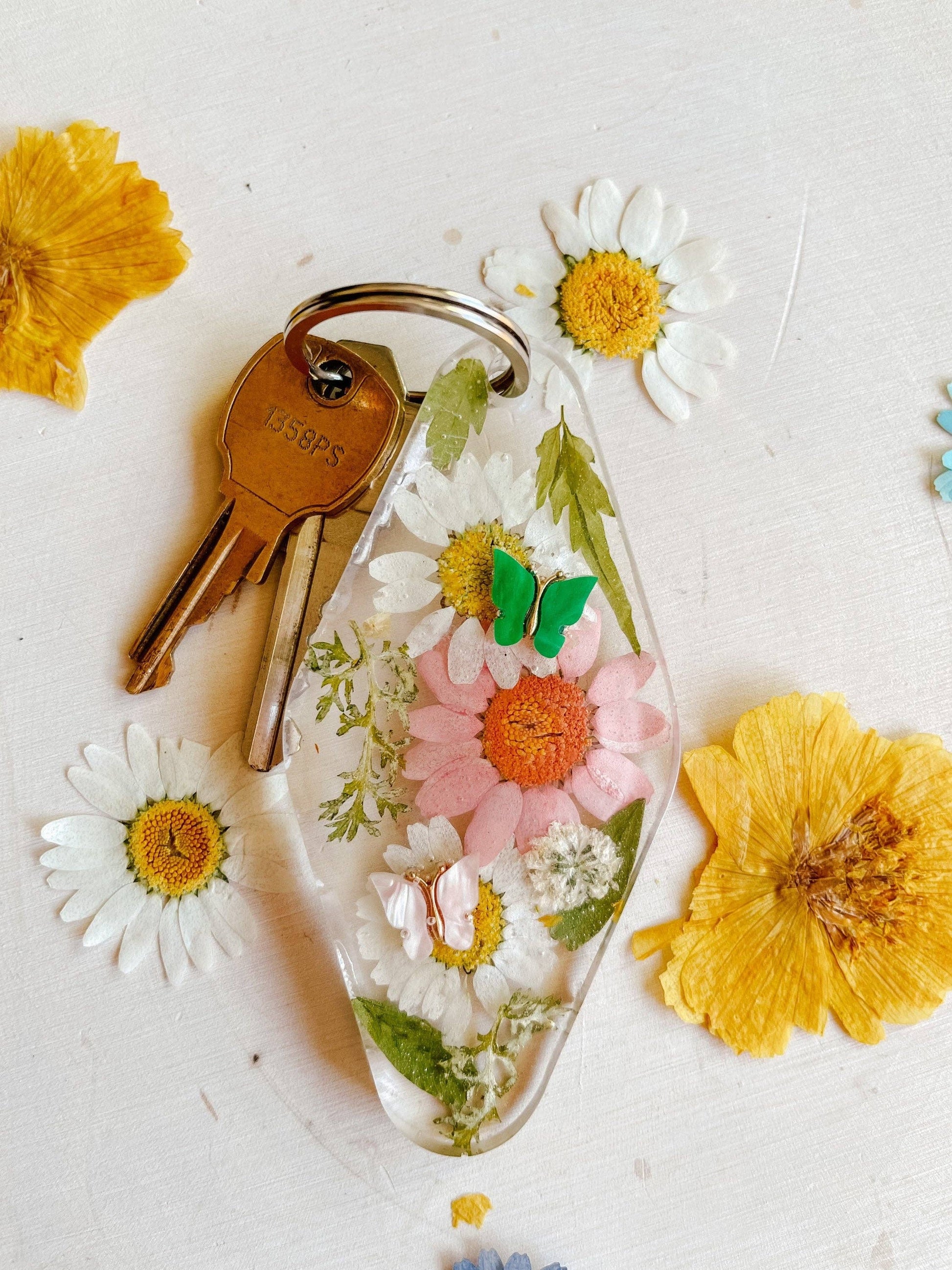 These resin wildflower keychains are each handmade and filled with real dried florals and even dried fruit! I can do just about any color flower you would like! Feel free to message me with color requests :) They are the perfect gift for yourself or someone else! These are also made to order and my turn around is typically about 2 weeks. *** Please Read*** If you would like specific colors please put in notes at checkout what color florals you would like. If not the colors will be selected at random thank you! :)