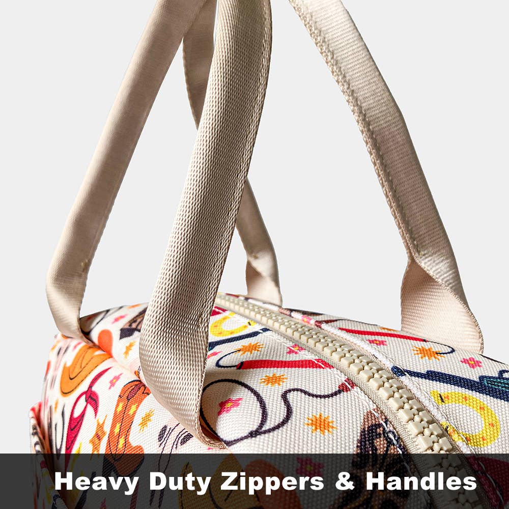 This vibrant lunch bag features a colorful floral design that adds a cheerful, lively touch to your daily routine. The bright, eye-catching flowers bring a burst of energy to your meals, while the compact size ensures easy portability. The insulated interior keeps your food fresh and at the ideal temperature, making it perfect for work, school, or picnics. Stylish and functional, this lunch bag combines vibrant design with practicality, offering a fun and fashionable way to carry your meals on the go. DETAILS: • Polyester • 11.2"W x 8.2"H x 6"D • 10 Liters hold 16 cans • Heavy duty zippers • Front compartments • Long-term insulation • Giftable, fun, fresh, playful, impulse buy, handmade, eco-friendly CARE: • Avoid using sharp objects or placing oversized items to prevent damage to the product; • Wipe the surface with a damp cloth and clean the interior; • Hang to dry; • Never use bleach or chlorine-containing abrasive cleaners.